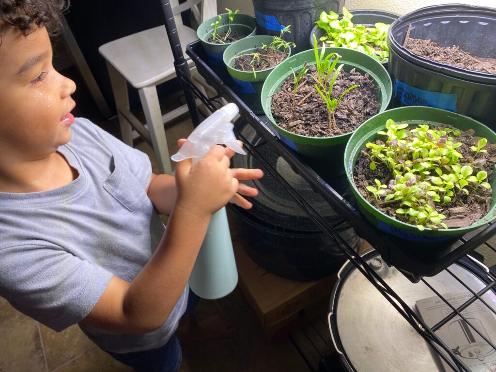 This was also very easy to do in our rental since I was able to set it up inside and utilize the grow lights since our house has less usable windows. I’d like to continue to figure out the best way to grow some of these supplemental greens throughout the summer in the most time and cost efficient way.